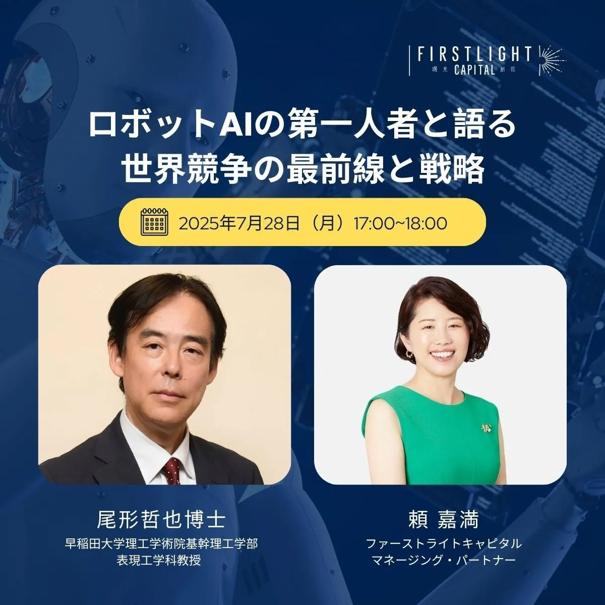 日本におけるフィジカルAIの進展と、それを取り巻く国際競争がますます注目されています。ファーストライト・キャピタル株式会社は、2025年7月28日の17時から18時30分まで、早稲田大学教授の尾形哲也博士を迎え、「ロボットAIの第一人者と語る、世界競争の最前線と日本の戦略」というイベントを開催します。場所は株式会社ユーザベースの本社、千代田区丸の内です。