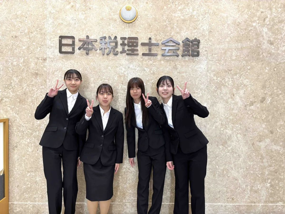 訪問の際には、日本税理士会連合会の税理士たちが講演を行い、税理士制度の歴史やその業務内容、さらには税理士としての魅力などについてお話がありました。遠井洋子専務理事、松井寛人常務理事、市木雅之理事の三人は、実際に税理士として働く現場から生の声を届け、学生たちは彼らの専門知識から多くの刺激を受けました。特に、税理士試験や日商簿記検定に向けて努力している学生たちにとって、実践的な学びが得られる場となりました。