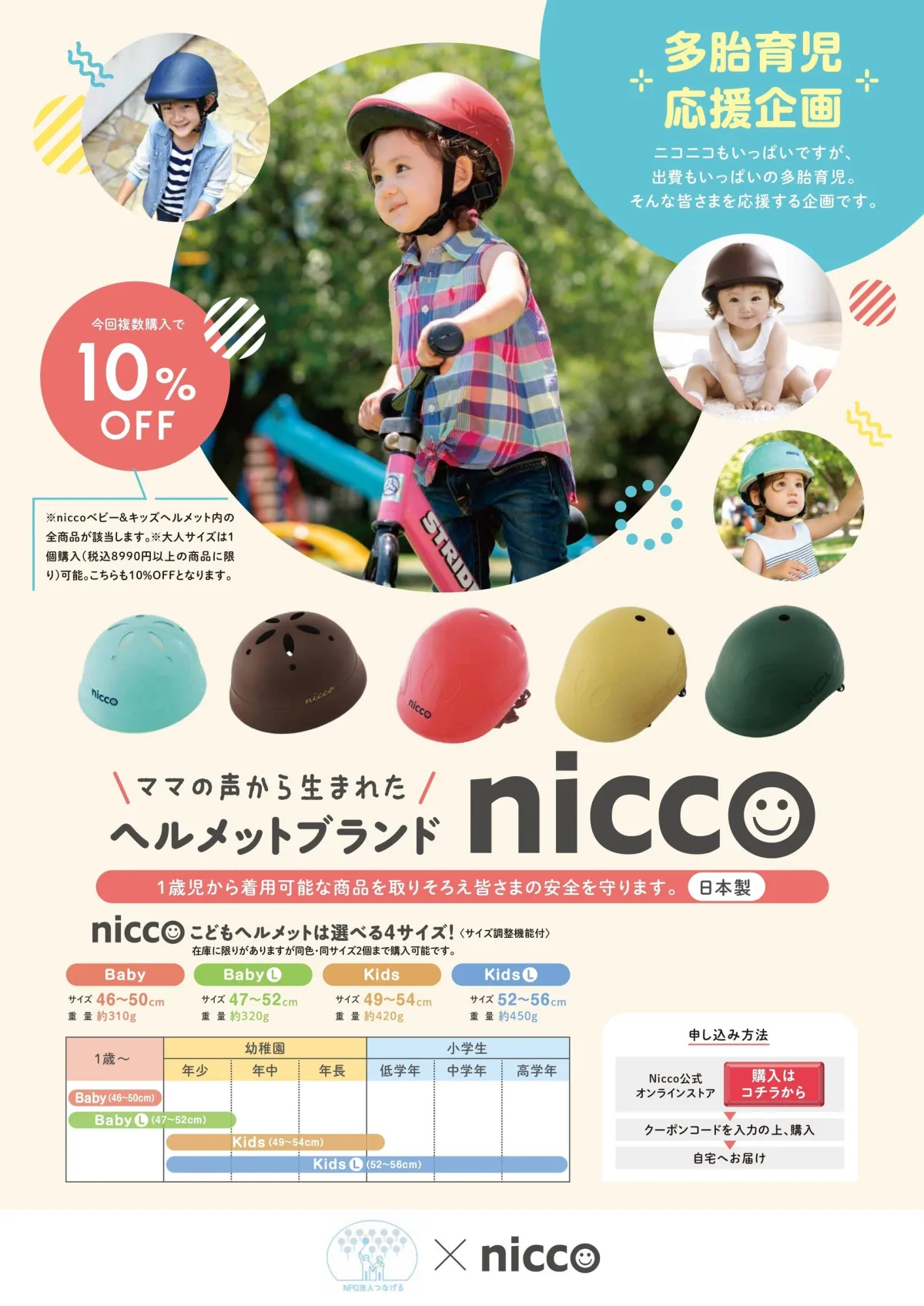 多胎育児を支えるniccoヘルメットの特別キャンペーン