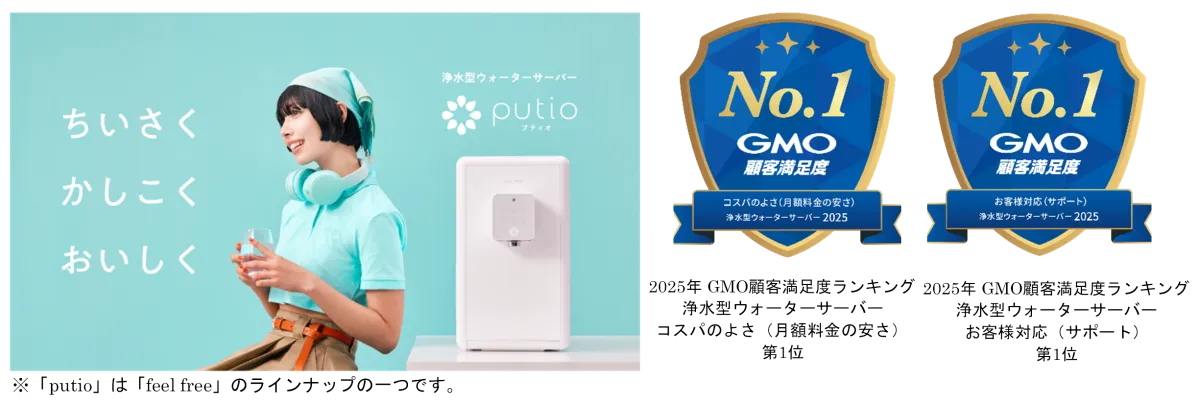 浄水型ウォーターサーバー「feel free putio」が顧客満足度での殊勲