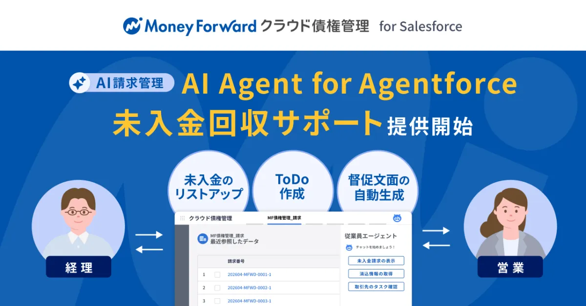株式会社マネーフォワードが新たに発表した『AI Agent for Agentforce 未入金回収サポート』は、債権管理業務の自動化を実現する画期的なサービスです。このサービスは、Salesforceプラットフォーム上で提供され、特に未入金の回収業務における一連のプロセスを大幅に効率化します。
