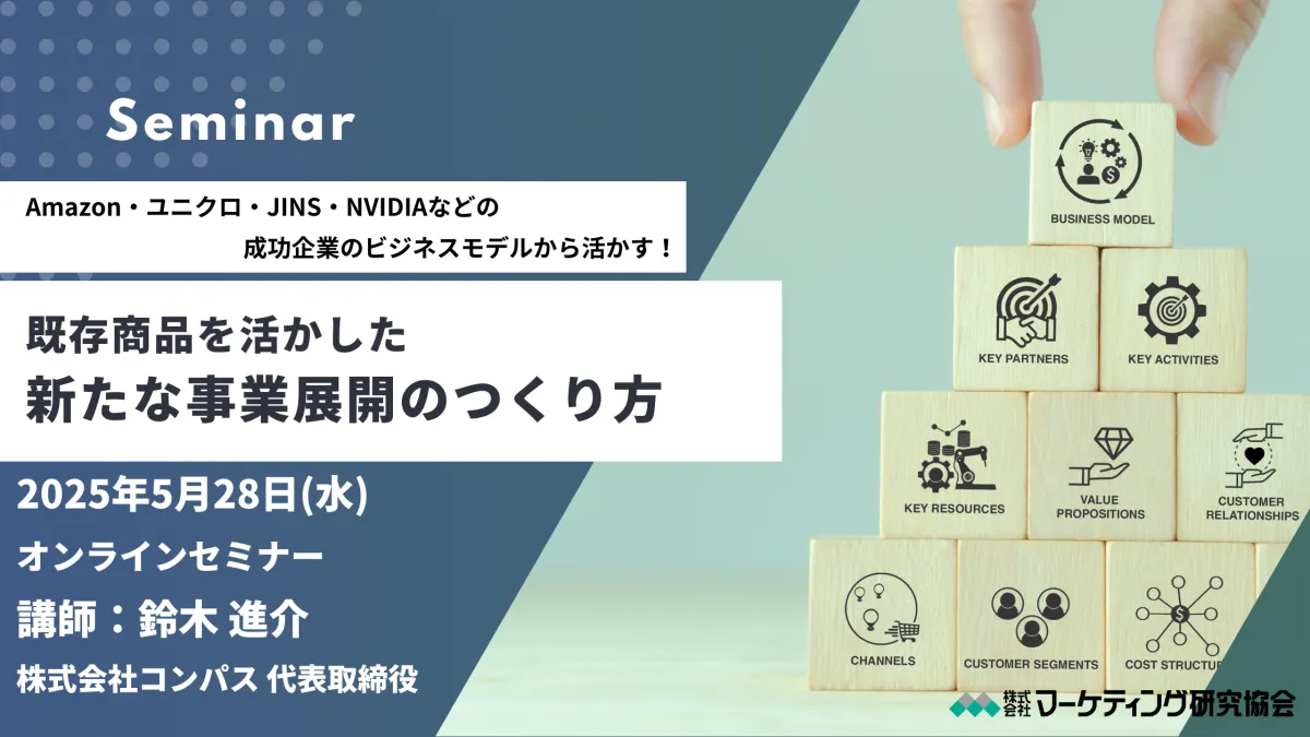 2025年5月28日、マーケティング研究協会は新たな市場展開の方法をテーマにしたセミナーを開催します。このセミナーは、成功した企業の戦略を学び、既存の商品やサービスを「新たな収益源」に変えるための実践的なアプローチを提供します。