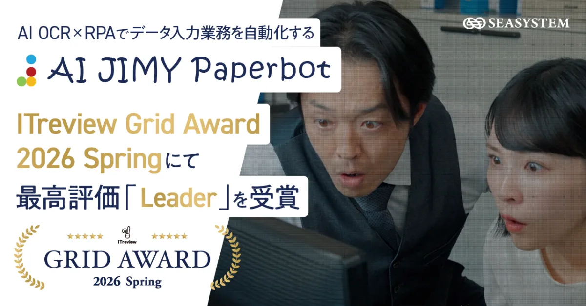 シー・システム株式会社が開発したデータ入力自動化ツール「AI JIMY Paperbot」が、アイティクラウド株式会社主催の「ITreview Grid Award 2026 Spring」において、最高評価である「Leader」を受賞しました。この評価は、約15.7万件のユーザーレビューを元に決定されたもので、顧客満足度と製品認知度の両面で優れた成果を示しています。