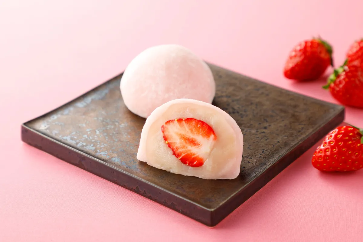 2026年1月6日(木)より、期間限定の苺大福が登場します。この苺大福は、千葉県産の「とちおとめ」を丸ごと一粒使用し、ミルク仕立ての白餡とともに柔らかいお餅で包み込みました。これからの季節にぴったりな、一口で味わえる甘さと酸味の絶妙なバランスが楽しめます。