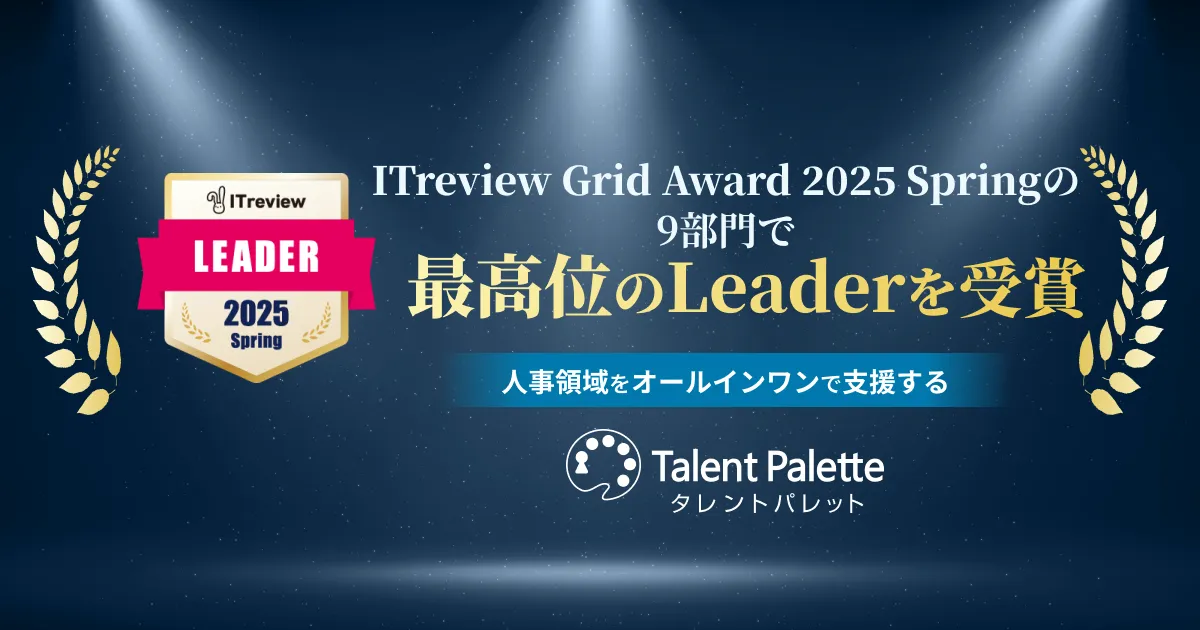 株式会社プラスアルファ・コンサルティングが提供するタレントマネジメントシステム『タレントパレット』が、IT製品レビュープラットフォーム「ITreview(アイティレビュー)」が主催する「ITreview Grid Award 2025 Spring」において、9つの部門で最高位の「Leader」を受賞するという大きな成果を収めました。この受賞は、タレントパレットが多くのユーザーから高い評価を得ていることを示すものです。