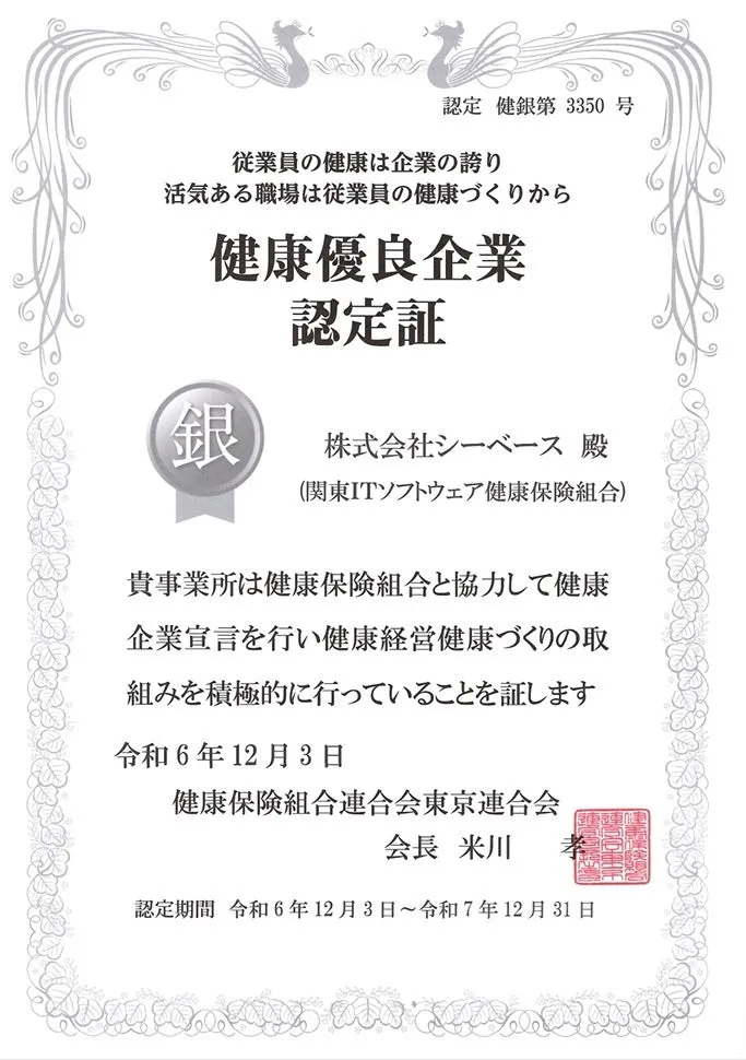 株式会社シーベース(以下、シーベース)が、健康優良企業として「銀の認定」を東京連合会より2年連続で授与された。これは、同社が推進している健康経営や健康づくりへの真剣な取り組みを象徴する重要な成果だ。この認定は2026年1月1日付けでの正式なものとなり、シーベースの企業全体での健康意識向上の姿勢を示すものである。