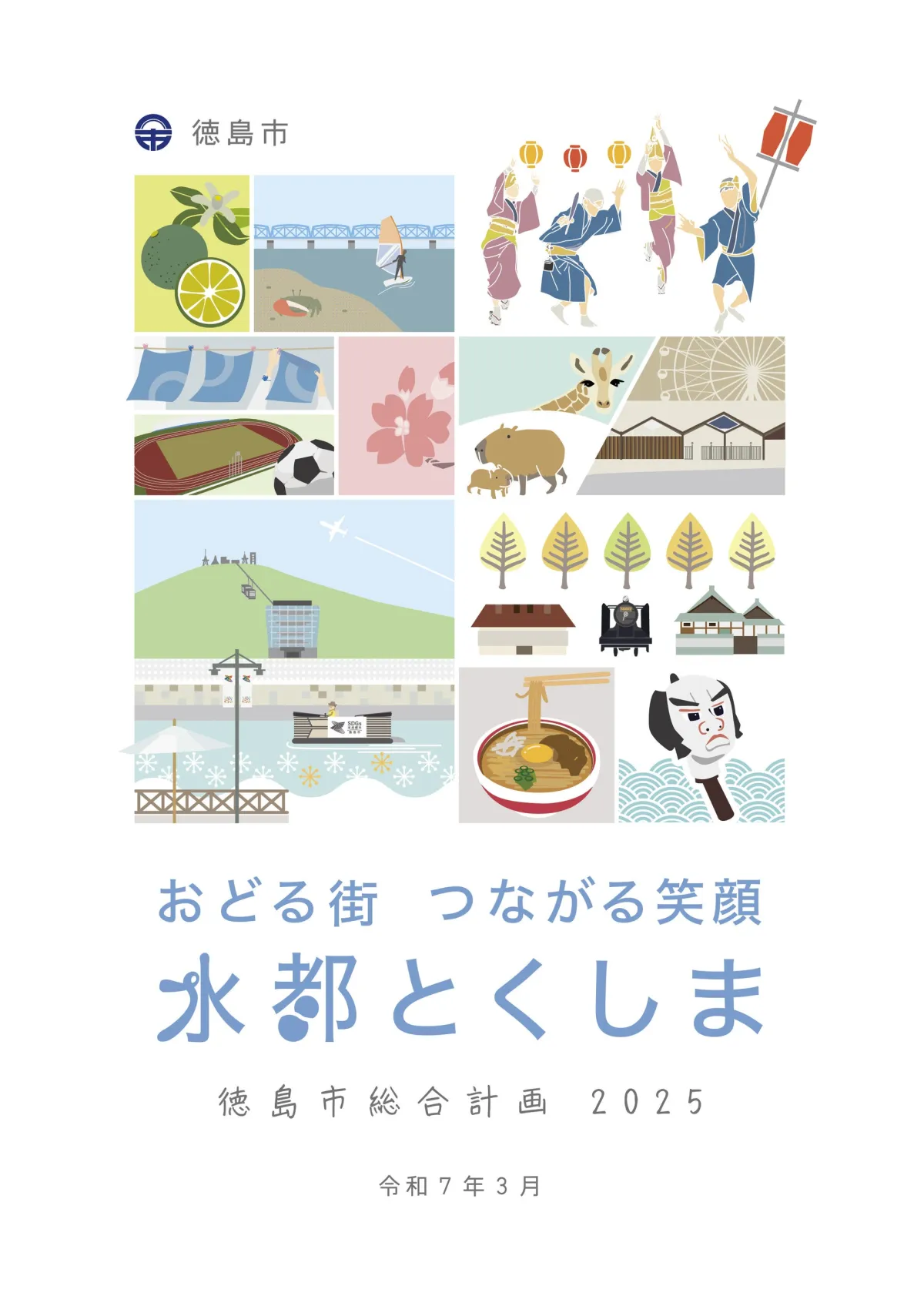 本年令和7年4月から、徳島市では新たなまちづくりを指針とする「徳島市総合計画2025」がスタートしました。この計画は、地域の未来を見据えた具体的なビジョンを掲げており、目指すべき将来像として「おどる街つながる笑顔水都とくしま」というキャッチフレーズが設定されています。このビジョンには、子どもからお年寄りまで、誰もが自分らしく暮らせる環境の創出が含まれています。