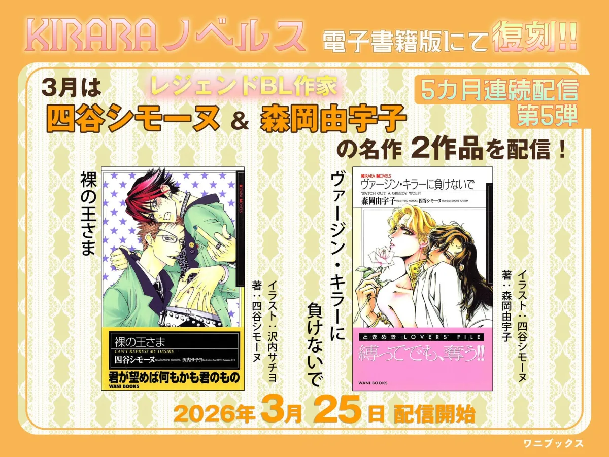 2026年3月25日、株式会社ワニブックスは、BL(ボーイズラブ)ジャンルにおける名作ともいえる、四谷シモーヌの『裸の王さま』と森岡由宇子の『ヴァージン・キラーに負けないで』の電子書籍版を配信開始します。これはファンにとって待望のニュースであり、特に90年代から活躍してきたレジェンド作家の作品を再び楽しむことができる素晴らしい機会です。この配信により、かつての感動を新たに感じられることでしょう。