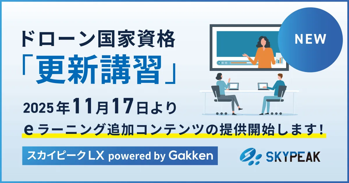 この新コンテンツは、株式会社スカイピークと株式会社Gakken LXの共同開発によるもので、ドローン国家資格の「更新講習」および「失効再交付講習」をオンラインで受講できるようになります。これにより、登録更新講習機関は、より多くの受講者にシームレスに対応できるようになるのです。