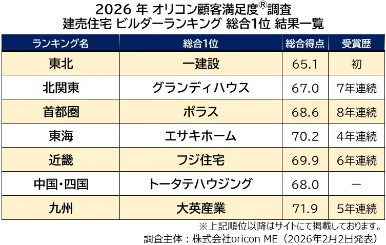 2026年オリコン顧客満足度調査『建売住宅ビルダー』最新ランキング発表!