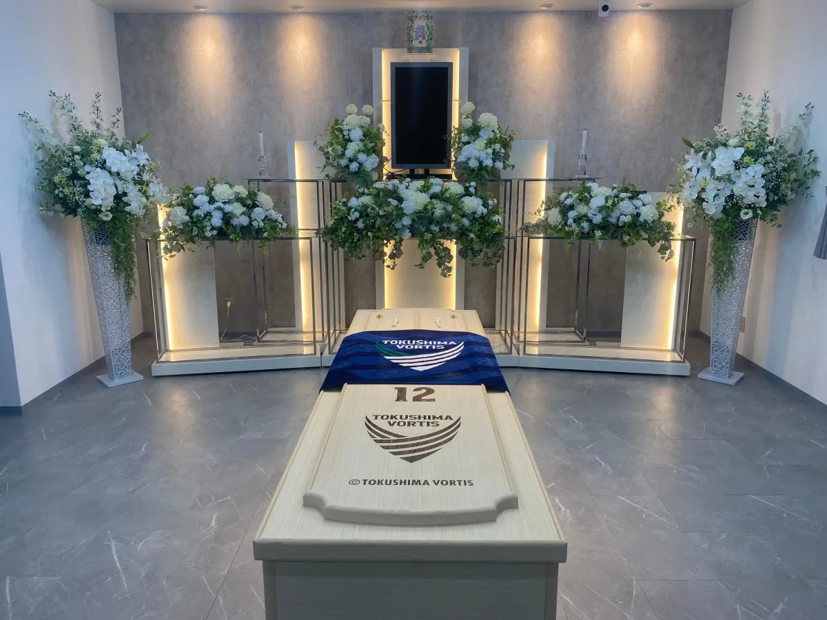 - - Jリーグ初の徳島ヴォルティス公式コラボ棺展示