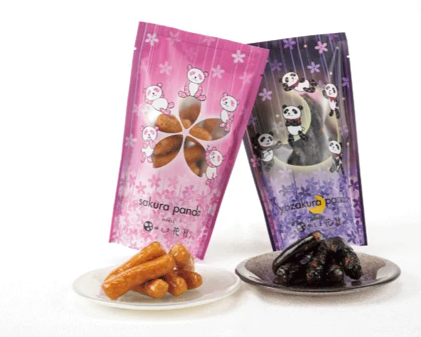 まず、〈ゆしま花月〉からは、大丸松坂屋の公式キャラクターである「さくらパンダ」と「よざくらパンダ」をデザインしたかりんとうが登場します。このコラボパッケージは初めての試みで、可愛らしいデザインが目を引きます。 かりんとうは、約90g入で税抜648円、そしてより特別な「まゆずみ」は85g入り702円となっています。