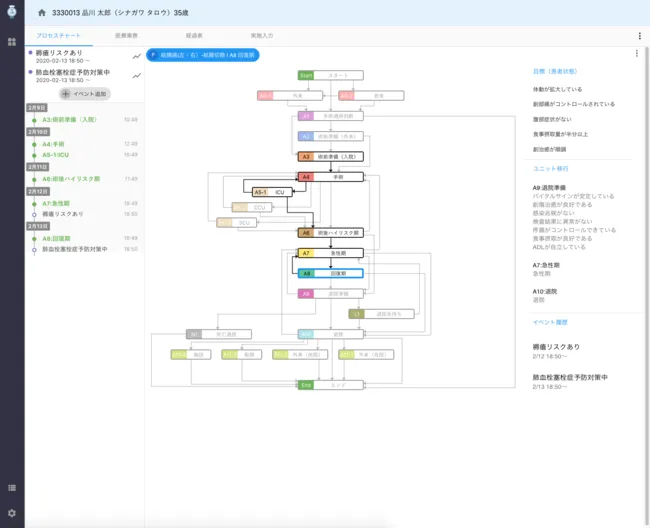 患者の病状の変化に応じて、行うべき作業(To Do)が自動的に追加・削除される仕組みを備えており、スタッフは絶え間なく変化する要件に柔軟に対応できます。
