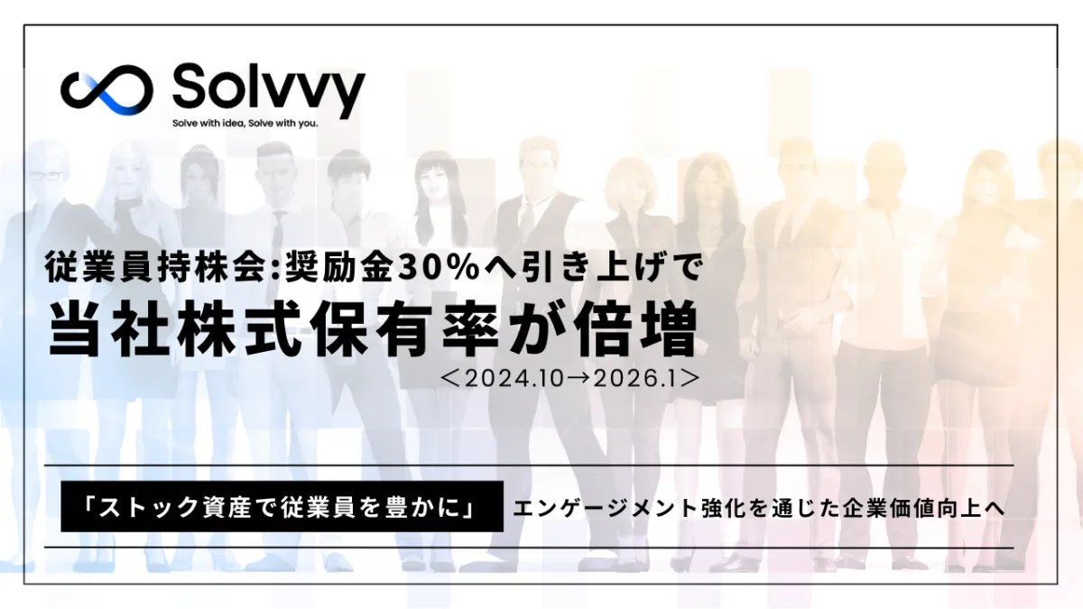 Solvvy株式会社は、2025年7月に従業員持株会の奨励金付与率を30%に引き上げたことにより、対象となる従業員の株式保有率が約4割に倍増したことを発表しました。この動きは、同社の人的資本投資の一環です。