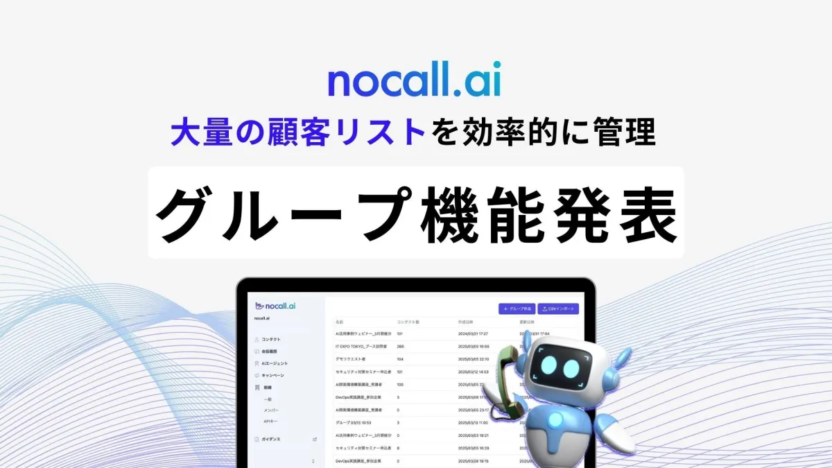 nocall株式会社が、自社の生成AI架電システム「nocall.ai」に新機能「グループ機能」を追加しました。これにより、営業担当者は顧客リストを効率的にグループ化し、一括管理することが可能になり、煩雑な手作業を省略することができます。