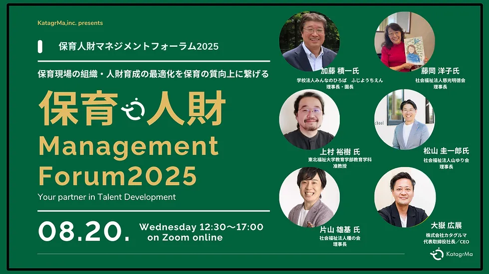 2025年8月20日(水)、株式会社カタグルマが主催するオンラインセミナー『保育人財マネジメントフォーラム2025』が開催されます。このフォーラムは、保育や教育、療育事業者に向けた経営支援を目的にしており、特に「人財育成」に焦点を当てています。