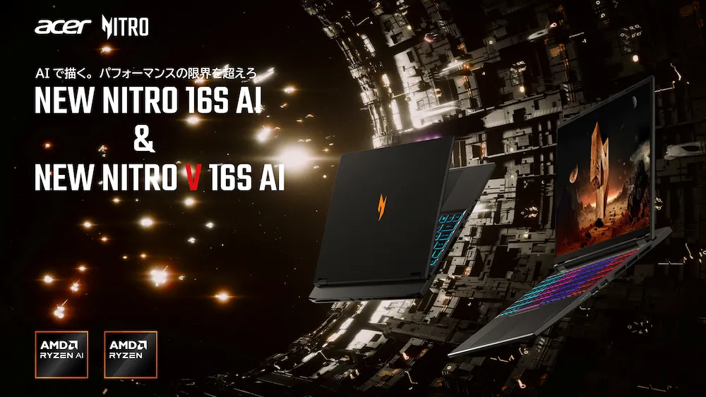 最近、カジュアルからコアゲーマーまで幅広く楽しめるゲーミングブランド「Nitro」から新しいノートPCが発売されました。日本エイサー株式会社は、AMD Ryzen™プロセッサーを搭載した新型ゲーミングノートPC「Nitro 16S AI」と「Nitro V 16S AI」を9月5日より販売開始しました。このシリーズは、ゲーミングパフォーマンスと日常使いの柔軟性を兼ね備え、多彩なラインアップでユーザーの要望に応えます。
