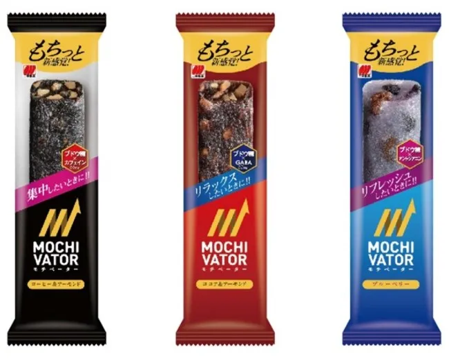 「MOCHIVATOR」は、以下の3種類が提供されています。各バーは、異なるシーンに合わせた栄養素を含んでおり、手軽に楽しむことができます。