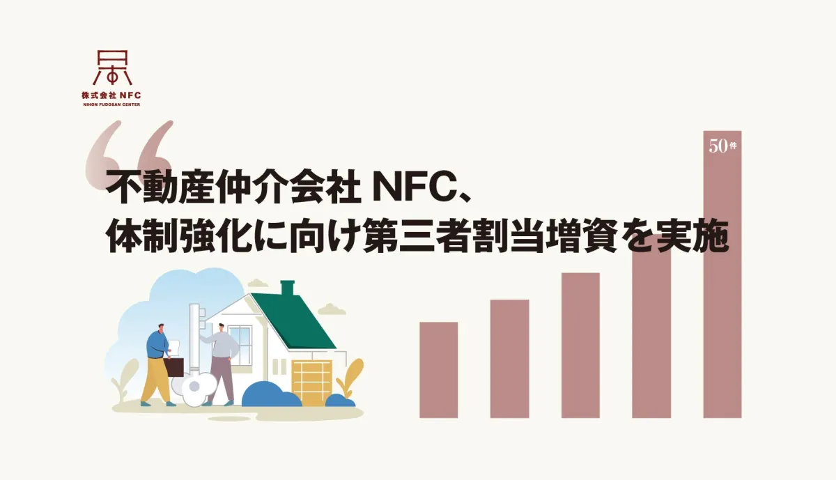 不動産仲介企業NFCが、母体企業のユニオンテックとの連携を強めるべく、第三者割当増資を実施しました。この増資は、NFCの事業成長に向けた体制強化を目的としています。NFCは2025年7月に設立されたばかりですが、設立から半年間で約50件の引き合いを獲得しており、その成長性に期待が寄せられています。