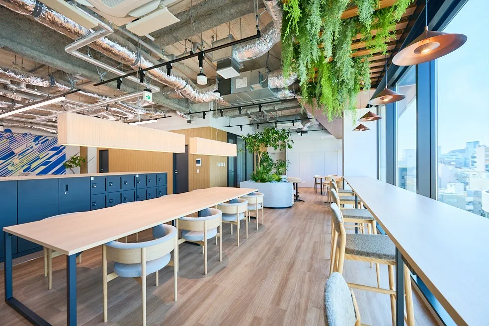 - - コミュニティースペース: 社員同士がリラックスしながら交流できるようなデザインがされています。
