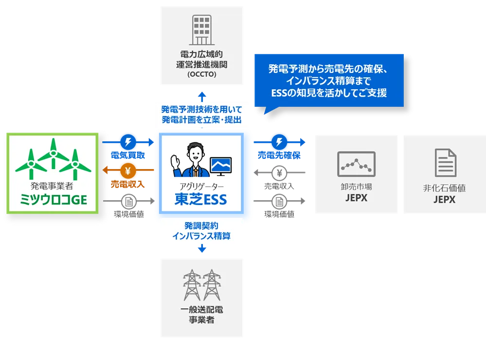 ミツウロコGEは、電力市場の需給バランスに応じた供給を行い、再エネを主力電源へと成長させる取り組みを進めていきます。また、東芝ESSもこれまでの太陽光発電に加え、風力発電の分野でもアグリゲーション事業を拡大し、より柔軟で効率的な電力システムの構築に寄与していく方針です。