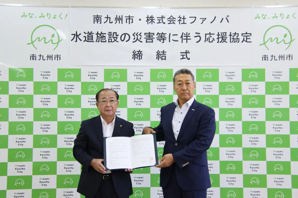 令和7年9月29日、南九州市は株式会社ファノバと「水道施設の災害等に伴う応援協定」を結びました。この協定は、大規模な地震や風水害などによる水道施設の被災を想定し、迅速に対応するためのものです。具体的には、断水が発生した際に市民に給水を行うための災害応援要員の派遣や、給水車、非常用給水袋の提供などが含まれています。