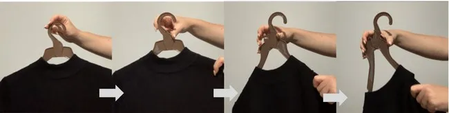 時短ハンガーの最も大きな特徴は、衣類を片手で簡単に外せること。親指で特定の部分を押すだけで、ハンガーが半分に折りたたまれ、衣類がスムーズに取り外せるのです。これは、特に手がふさがっている時や忙しい朝に役立ちます。
