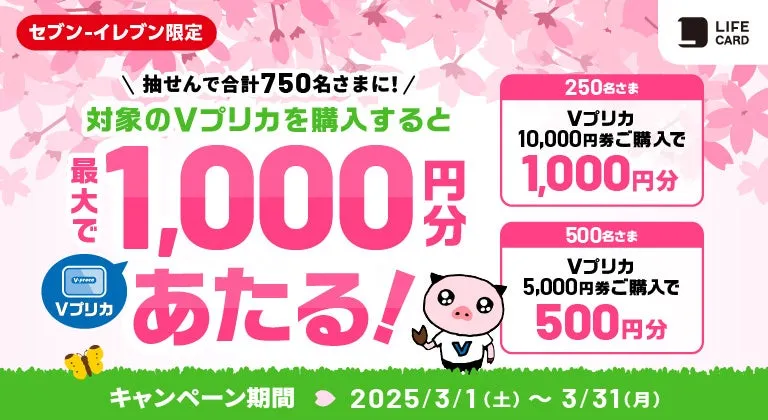 ライフカード株式会社が提供するVisaプリペイドカード『Vプリカ』が、2025年3月1日からセブン‐イレブンで特別なキャンペーンを実施します。このキャンペーンでは、マルチコピー機を利用して対象のVプリカを購入することで、抽せんで最大1,000円分のVプリカが当たるチャンスがあります!