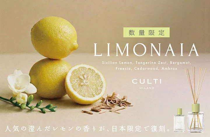 イタリアのフレグランスメーカーCULTI MILANOから、新たに日本限定で復刻される人気の香り「LIMONAIA(リモナイア)」が注目を集めています。このアイテムは3月6日(金)より、全国のアクタス店舗およびオンラインショップにて数量限定で発売されることが決定しました。CULTI MILANOは、独自のウッドスティック式のルームフレグランスの先駆者として知られており、特に「LIMONAIA」はそのフレッシュで洗練された香りから長年愛されてきました。