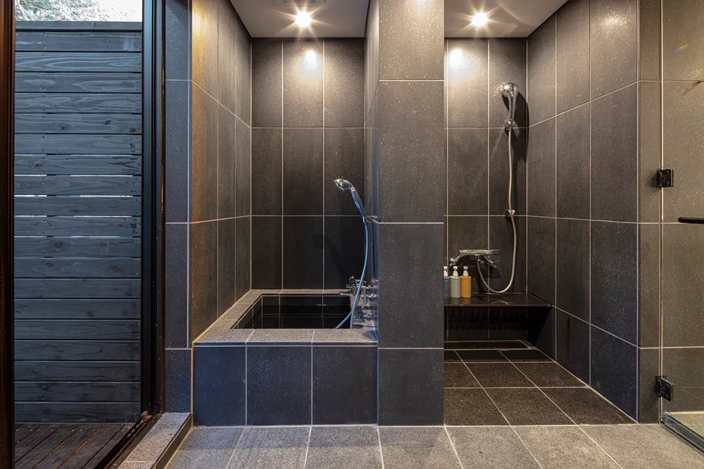 「SHIKI -HAKONE-」のコンセプトは「自然に寄り添う洗練されたプライベートステイ」。建築家・子浦中が設計したこのヴィラは、木や石、焼物などの自然素材をふんだんに取り入れた空間で、日常から離れた非日常のラグジュアリーさをご提供します。特に、プライベートスパからは箱根の森を見渡すことができ、この景観が癒しの効果を倍増させてくれます。