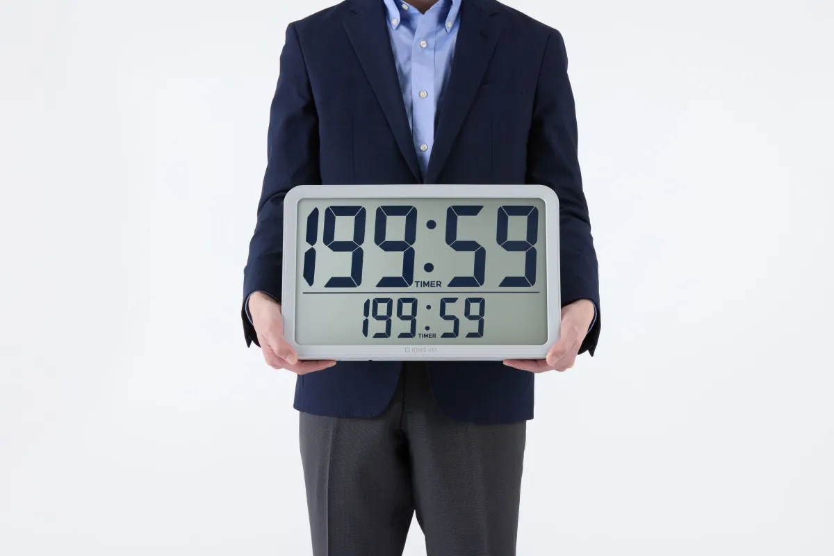 「ザラージ リモコン付きダブルタイマークロック」は、約355×222mmの大きな液晶画面を搭載。これにより、数十メートル先からでも時間を確認しやすくなっています。特に教室や大規模な会議室での使用に適しており、視認性と操作性の両方を兼ね備えています。