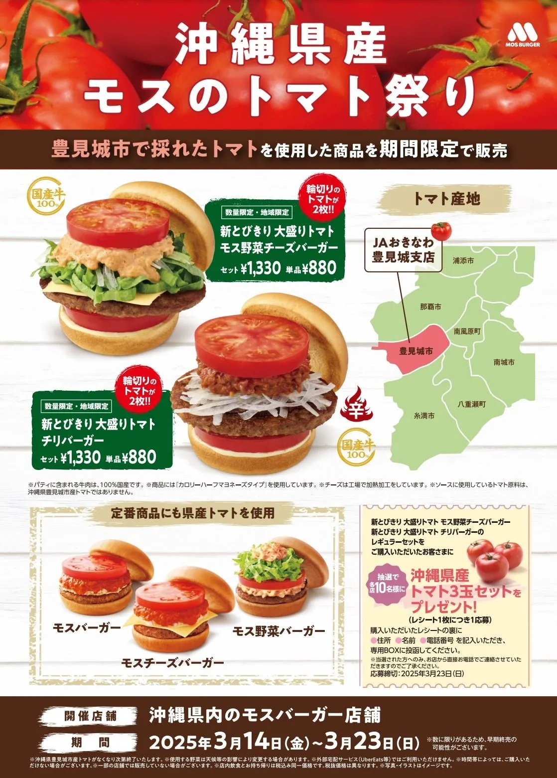 3月14日から23日の期間にぜひ、モスバーガー各店舗で沖縄の新鮮なトマトの風味を体感し、地域とのつながりを深める特別な体験を楽しんでください。きっと忘れられない美味しさと、心温まる交流が待っています。