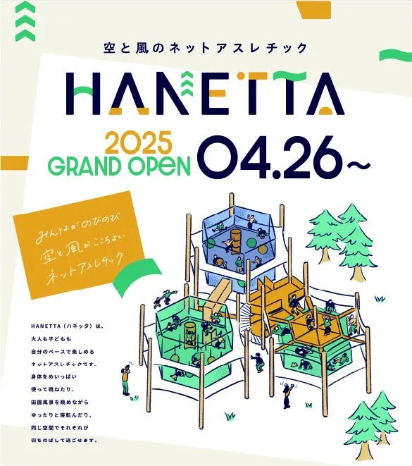群馬県利根郡の美しい自然に囲まれた場所に、空と風のネットアスレチック施設「HANETTA」が登場します。このアスレチックは、4月26日に2025年度の営業を開始し、老若男女さまざまな方々に楽しんでもらうことを目指しています。