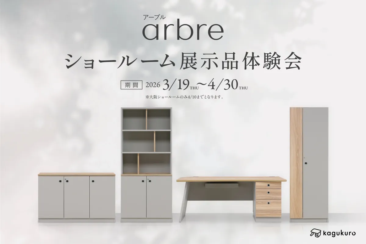 カグクロ株式会社は、国産のエグゼクティブ家具ブランド「arbre(アーブル)」の展示・体験会を2026年3月19日から4月30日まで、全国3拠点(東京、名古屋、大阪)にて開催します。特に、大阪ショールームでは4月10日までの特別開催となるため、参加をお考えの方は早めの予約をお勧めします。