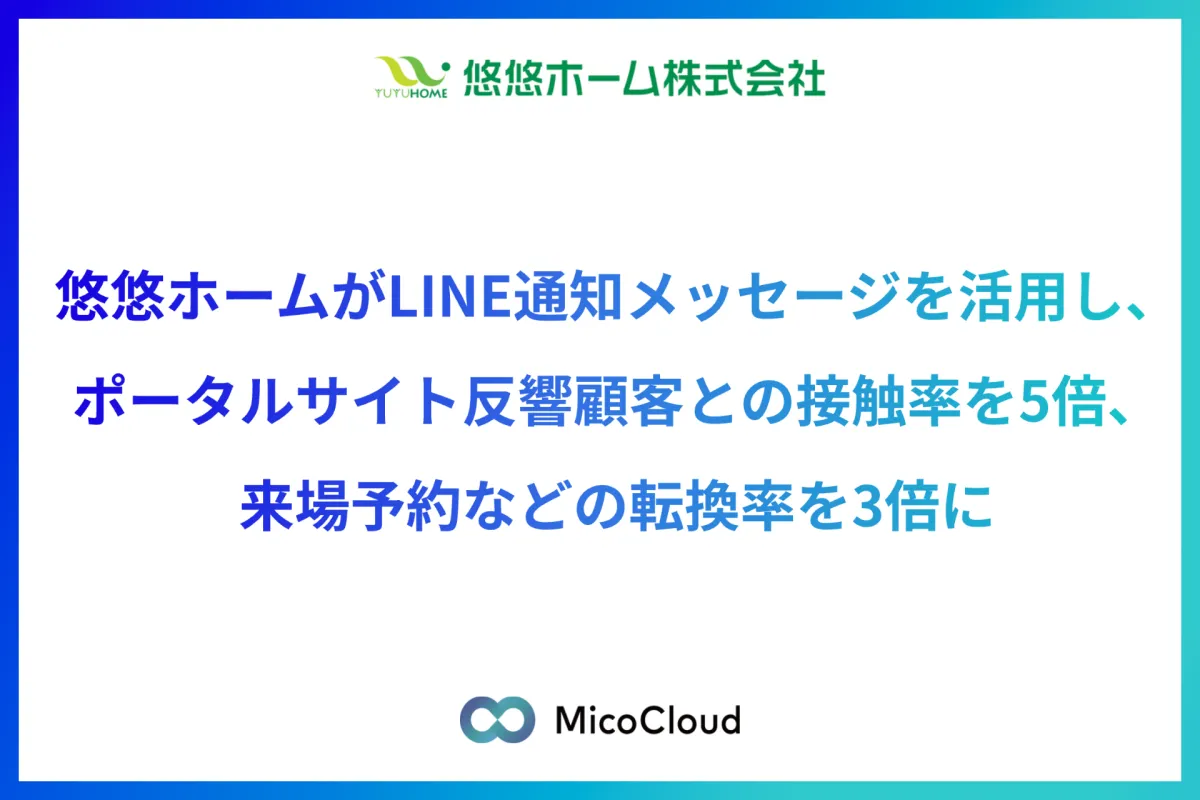 2024年4月から悠悠ホームは「MicoCloud」を活用し、顧客へのアプローチ方法を大きく見直しました。ポータルサイトを通じた問い合わせに即時にLINE通知を連携させることで、問い合わせ後すぐにメッセージが届く仕組みとして機能させました。その結果、報告によれば、反響率が従来の約3倍に向上し、顧客とのつながりが飛躍的に向上したことが明らかとなっています。