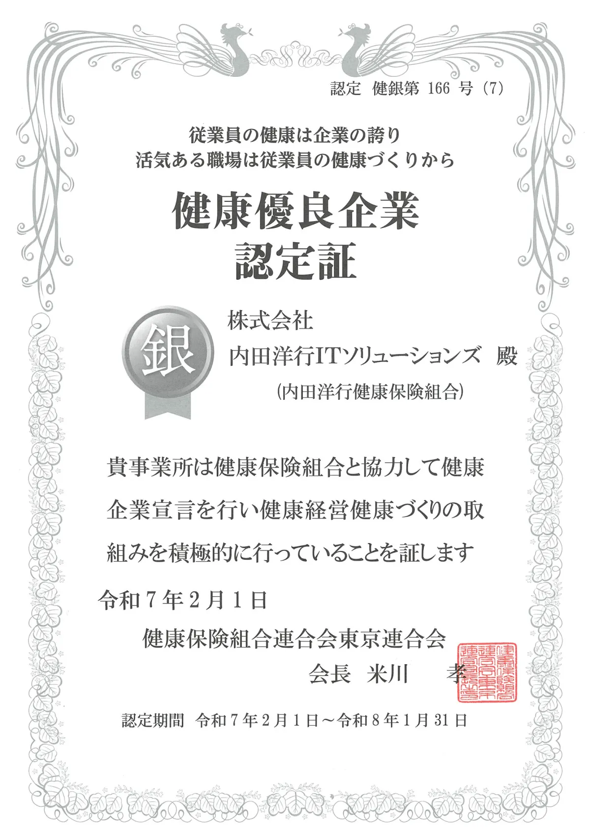 内田洋行ITソリューションズ、健康優良企業銀認定を取得