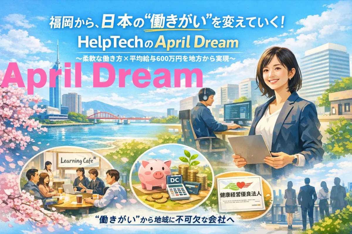 HelpTechの夢は、シンプルです。地方出身者が学び直しを諦めず、中小企業で自分の可能性を信じ、子育てや介護の環境でも成長を続ける。こうした社会を、まず福岡で実現し、そして全国に広げたいと考えています。HelpTechのApril Dreamは、地方こそが変革の中心であることを証明し、全ての人がそのパーティーに加わる社会を形にしていきます。私たちの冒険は始まったばかりです。