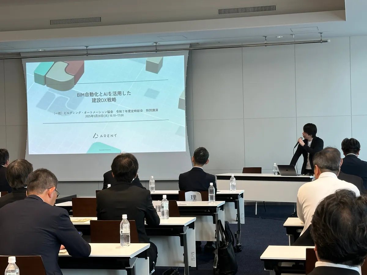 株式会社Arent(本社:東京都港区)は、代表取締役の鴨林広軌氏が2025年5月20日に開催された一般社団法人ビルディングオートメーション協会の令和7年度定時総会にて、「BIM 自動化と AI を活用した建設 DX」をテーマに特別講演を行ったことを発表しました。今、建設業界においてデジタルトランスフォーメーション(DX)が求められ、具体的な取り組みが進められています。この講演では、BIM(Building Information Modeling)とAI(Artificial Intelligence)を融合させた新しいアプローチが紹介されました。