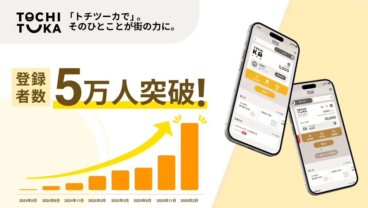 デジタル地域通貨「トチツーカ」登録者数が5万人を突破!