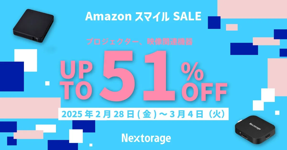 2025年のAmazonスマイルSALEでは、Nextorageの映像関連機器が過去最安値の特別価格で登場します。これを機に、映画鑑賞やプレゼンテーションに役立つアイテムをお得に手に入れましょう!