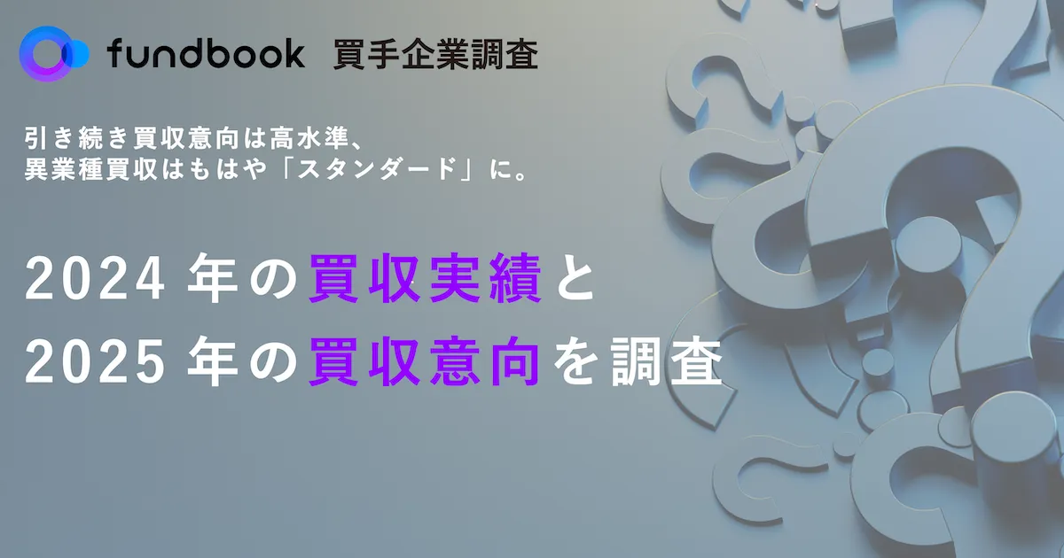 M&A(合併・買収)が企業の成長戦略としての役割を果たす中、株式会社fundbookは、2024年の買収実績および2025年の買収意向に関する調査を実施しました。本調査は、M&Aマッチングプラットフォーム「fundbook cloud」を利用する買手企業とM&A担当者383名を対象にしたものです。