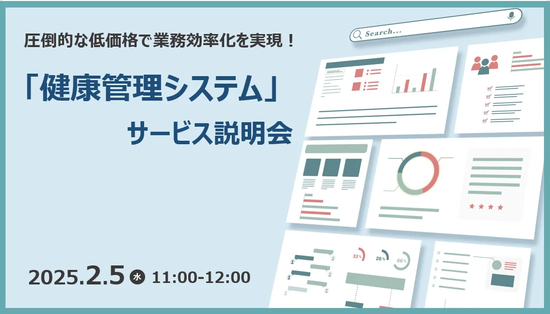 株式会社アドバンテッジリスクマネジメントは、2025年2月5日(水)に「圧倒的な低価格で業務効率化を実現!『健康管理システム』サービス説明会」を開催します。本ウェブセミナーは、人事や総務、労務部門の担当者や健康経営の責任者、さらには産業保健スタッフを対象としています。