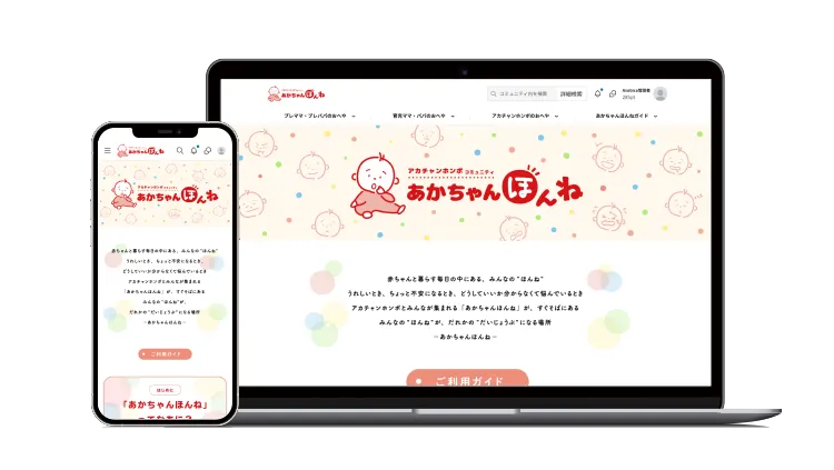 『あかちゃんほんね』は、妊娠・出産・育児の情報共有やサポートを目的としたコミュニティサイトです。SNSとは異なる環境で、初めて育児に挑む方から経験豊富な先輩まで、月齢ごとに同じ境遇のメンバーとつながり、リアルな意見や情報を交換できます。新しい環境だからこそ話せる「ほんね」を共有することができるのです。