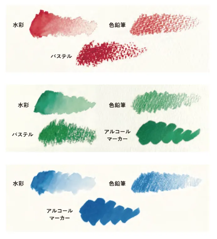 次に中目は多用途に使用できるポピュラーな選択肢で、水彩だけでなく、鉛筆や色鉛筆、パステルとも相性が良いです。初めての方でも取り扱いやすく、幅広い画材を楽しむことができます。