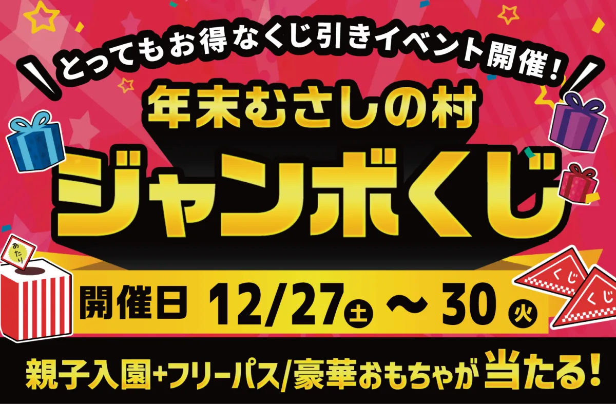 埼玉県加須市にあるファミリーランド「むさしの村」では、2025年12月27日(土)から30日(火)の4日間にわたり、特別イベント「年末むさしの村ジャンボくじ」を開催します。このイベントでは、参加者全員がおもちゃが必ず当たる嬉しい抽選会に挑戦できます!