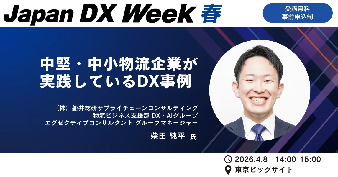 2026年4月8日、水曜日。日本最大のIT展示会「Japan IT Week [春] 2026」が東京で実施されました。この場で、株式会社船井総研サプライチェーンコンサルティングのエグゼクティブコンサルタント、柴田純平氏が「物流現場DX」をテーマに講演を行いました。特に中堅・中小企業が直面する課題に焦点を当て、デジタルトランスフォーメーション(DX)がどのように彼らの成長を支援できるかを議論しました。