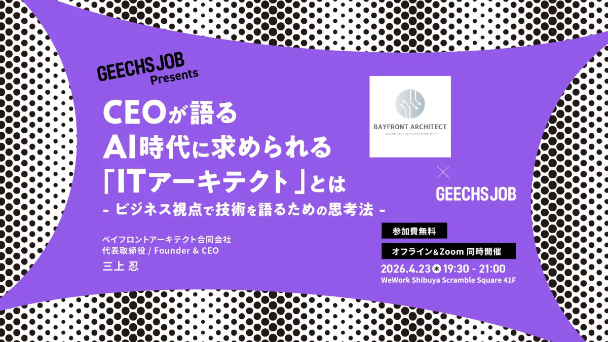 2026年4月23日(木)、都内の渋谷スクランブルスクエアにて、ギークス株式会社が主催する無料セミナー「CEOが語る、AI時代に求められる『ITアーキテクト』とは ~ビジネス視点で技術を語るための思考法~」が開催されます。このセミナーは、ITエンジニアや開発組織のマネージャー、さらには経営者や事業責任者を対象にしており、業界での実績を持つ講師による貴重な講義が行われます。