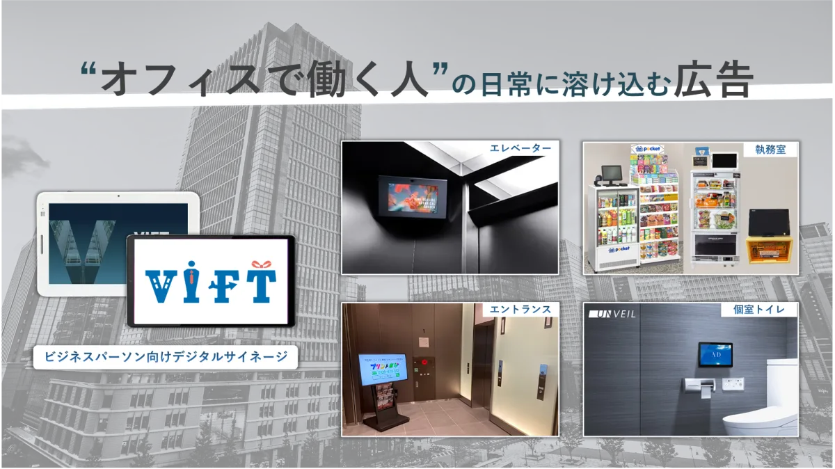 これまで「VIFT」では、エレベーターや執務室、休憩室、トイレ、ビルエントランス、さらには喫煙所といった多様な場所にデジタルサイネージを設置し、ビジネスパーソンの目に留まりやすい環境を整えてきました。新たな提携により広告メニューが刷新され、より多様なコンテンツの配信が期待されています。新しい媒体資料について興味がある方は、公式サイトからお問い合わせをお待ちしております。