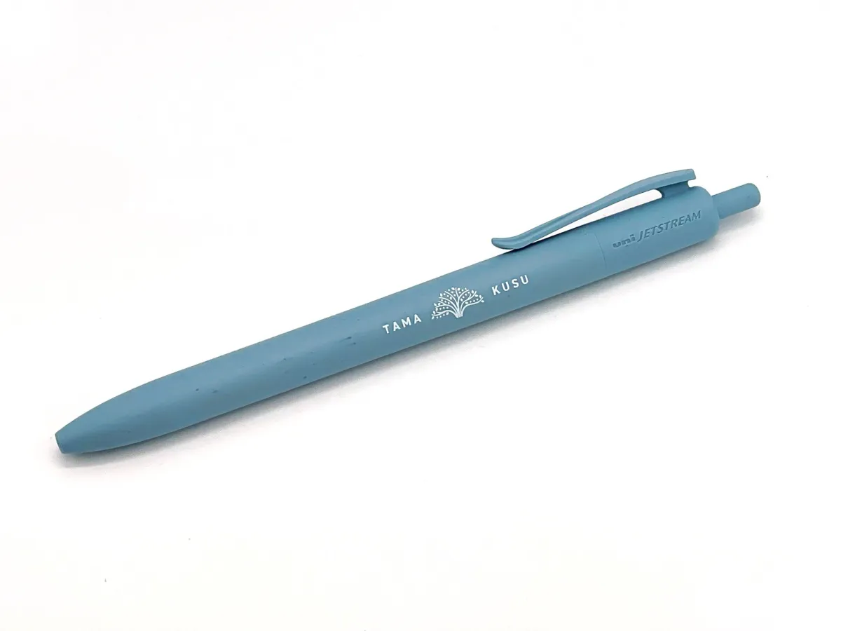 このオリジナルボールペンは、環境に優しい素材を使用しています。海洋プラスチックごみや使い捨てコンタクトレンズの空ケースを再生利用した「ジェットストリーム 海洋プラスチック」をベースに、たまくすの木のイラストが印刷されています。価格は500円(税込)で、本体の色はライトブルー、インクはブラックです。反対側には「YOKOHAMA ARCHIVES OF HISTORY」と刻まれ、横浜の歴史に触れる一品となっています。