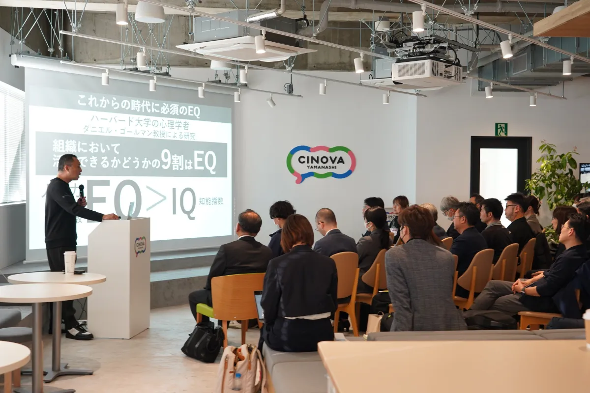 代表の関野吉記氏が示したセミナーの内容に注目が集まりました。成功を左右するものとしてEQ(感情的知性)が取り上げられ、知識やスキルだけではなく、自己理解、他者理解、そして共生の姿勢が重要であることが説明されました。